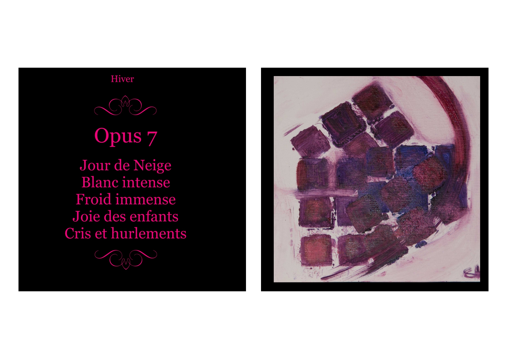 Je souhaite transmettre à travers ce livre un message universel d’équilibre, de paix intérieure et d’union, symbolisé par la coexistence du côté cartésien des carrés et de l’émotion du trait et des couleurs. Le plein et le vide de cette série de tableaux évoquent le yin et le yang.